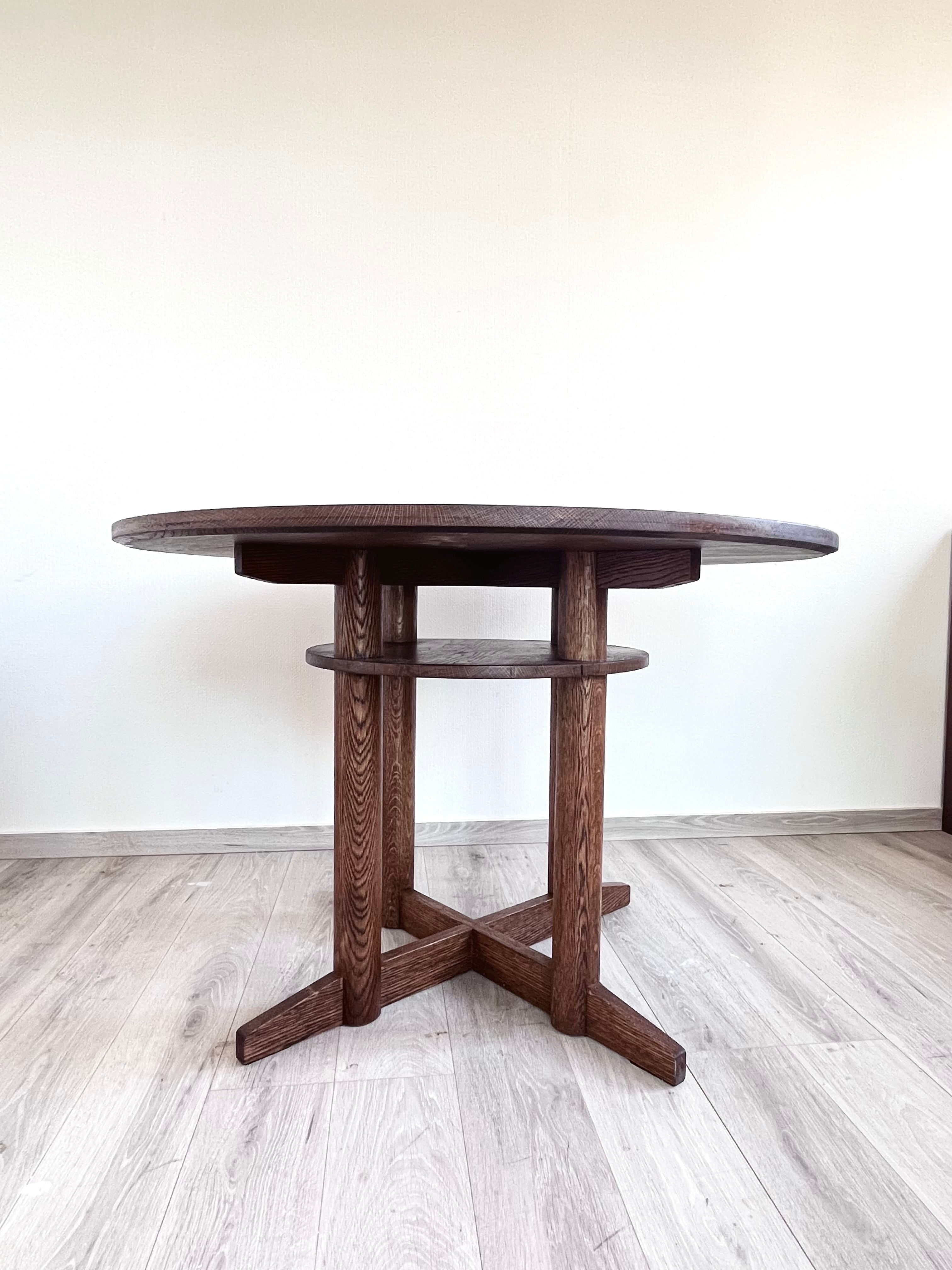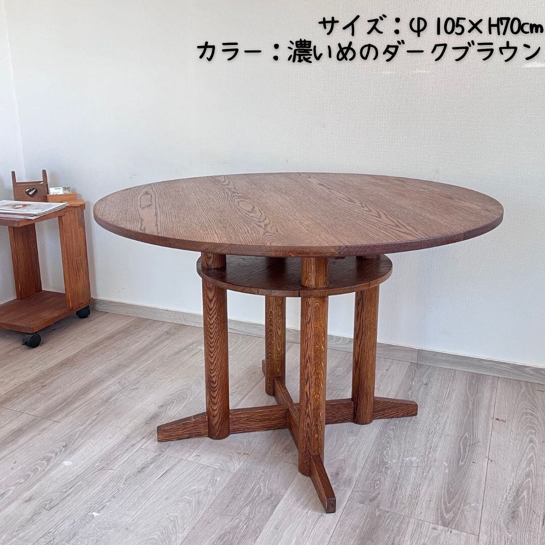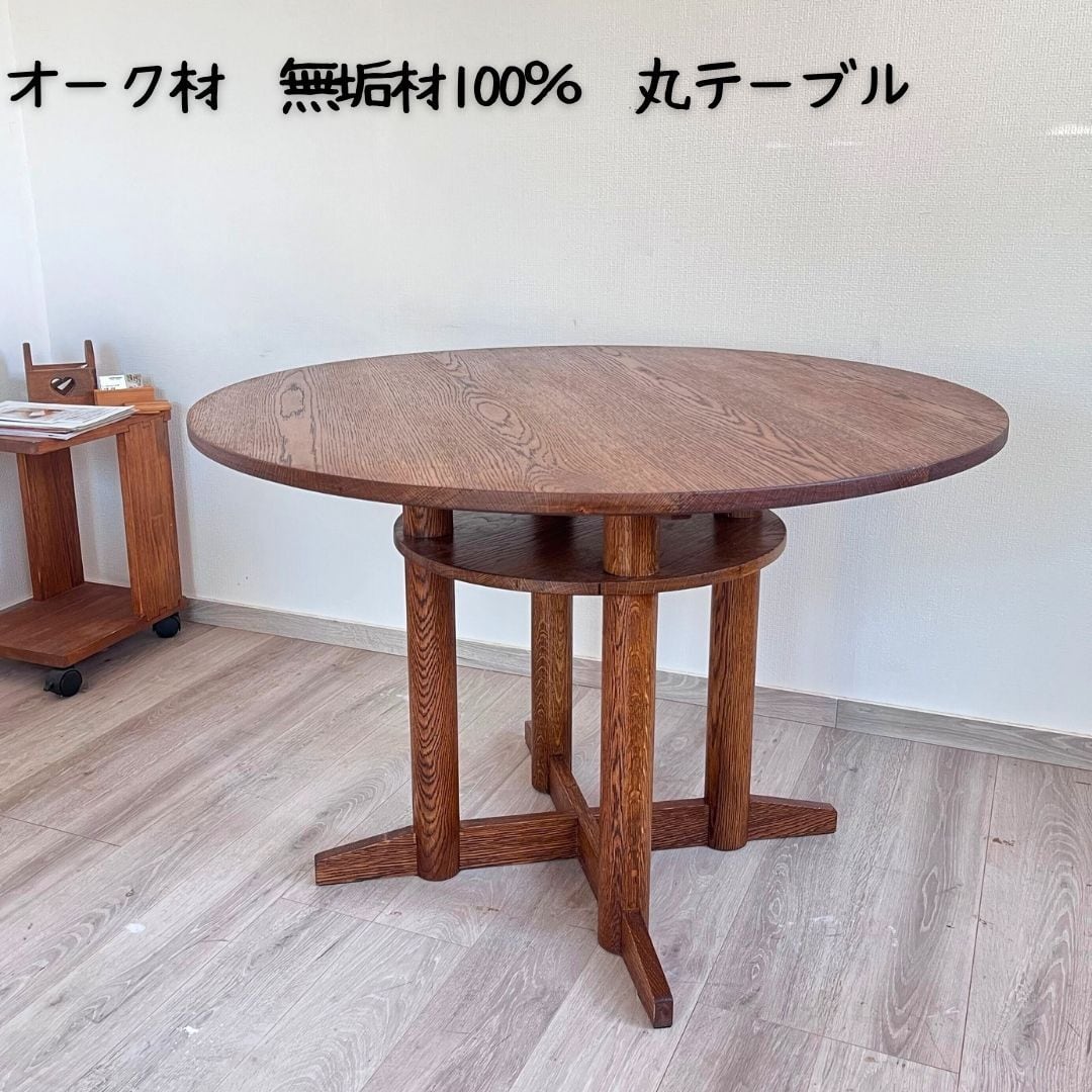 オーク材 100%の 丸テーブル 無垢材 ホワイトオーク ダイニングテーブル 棚付き おしゃれ かっこいい 直径φ105cm×H70cm サイズオーダー