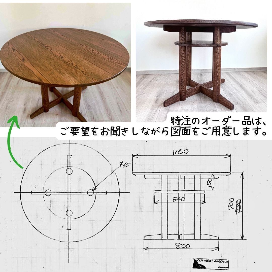 ■オーク材 100%の丸テーブル 無垢材 ホワイトオーク ダイニングテーブル サイズオーダー