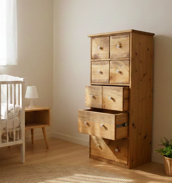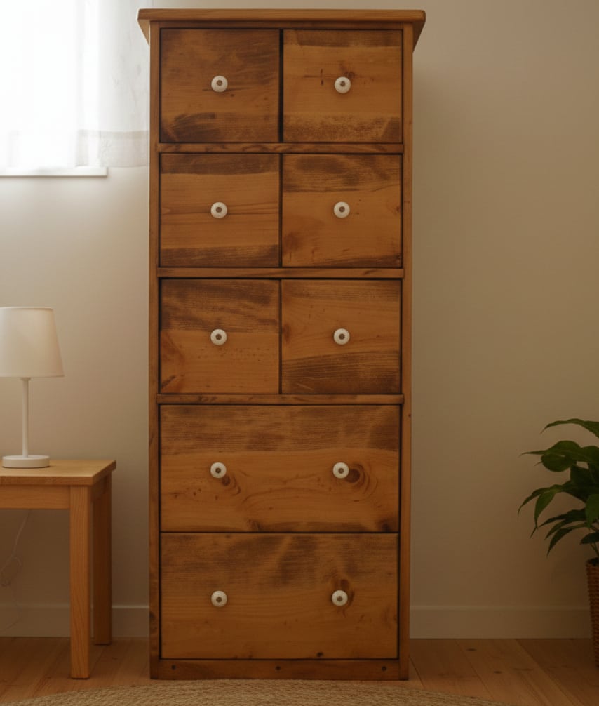 小さな引出し6と大きなスライドレール付き引出し2のスリムなチェスト