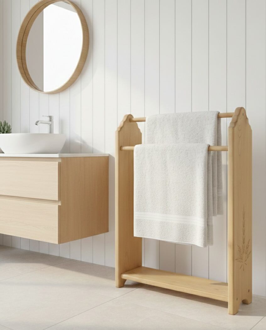 キルト作家さんに頼まれてデザインしたものですが、製作して販売すると、洗面や脱衣所などでタオルをかけて使われる方がほとんどでした(^o^;